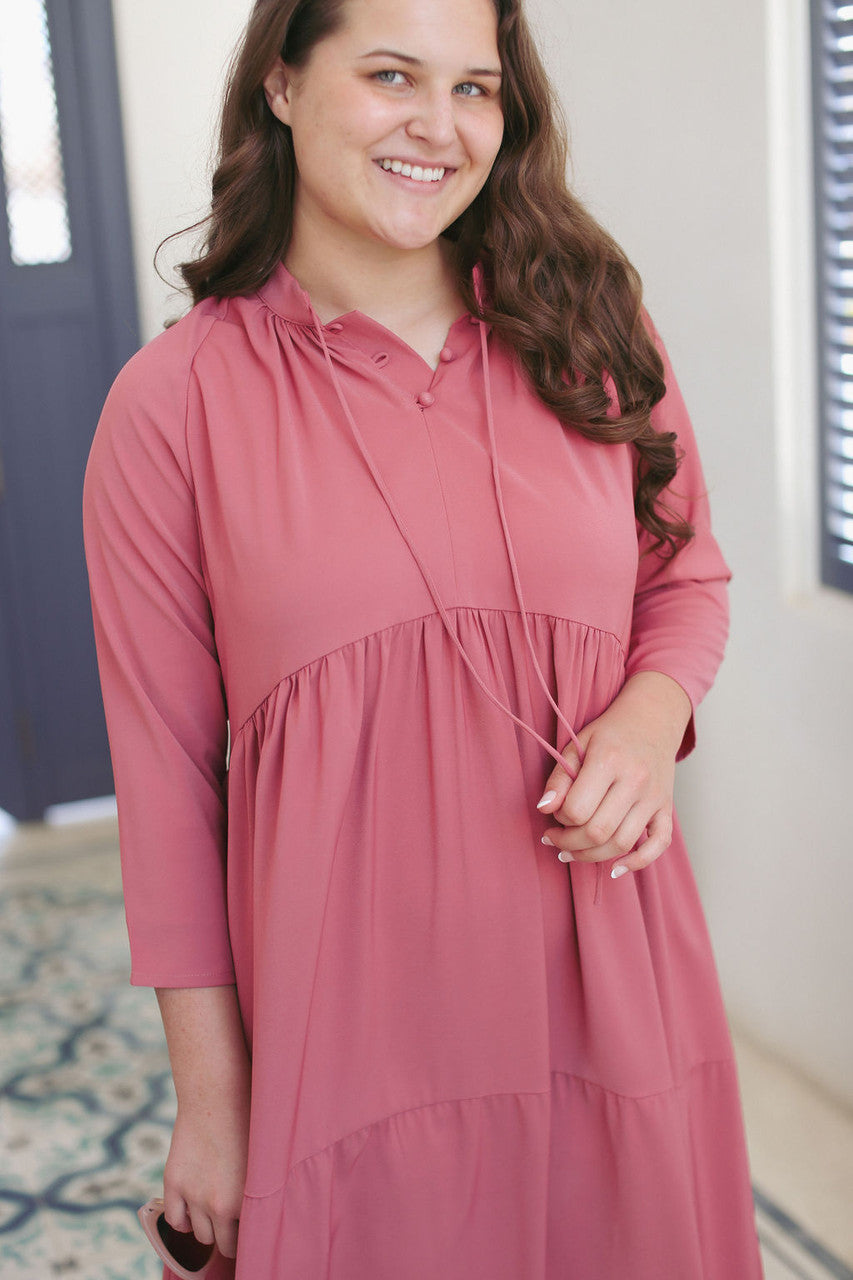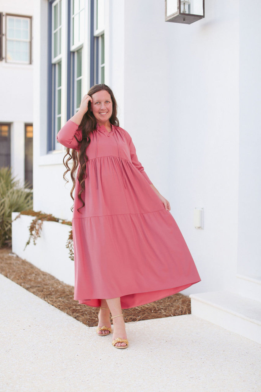 One of the comfiest dresses you will ever own! We wanted to create a dress that was comfortable, classy and one that you could throw on and run out the door in minutes! The relaxed, oversized fit makes it a wonderful choice for long days sightseeing, running errands, traveling, working, conferences - you name it! You will be comfortable all day long no matter way comes your way. Dress it up with the right shoes when the occasion calls - this dress is incredibly versatile! We love the sweet details at the neck for added interest as well as the hi-lo hem. This darling dress is also wonderful for expecting mommas! Pull over style. Side pockets.