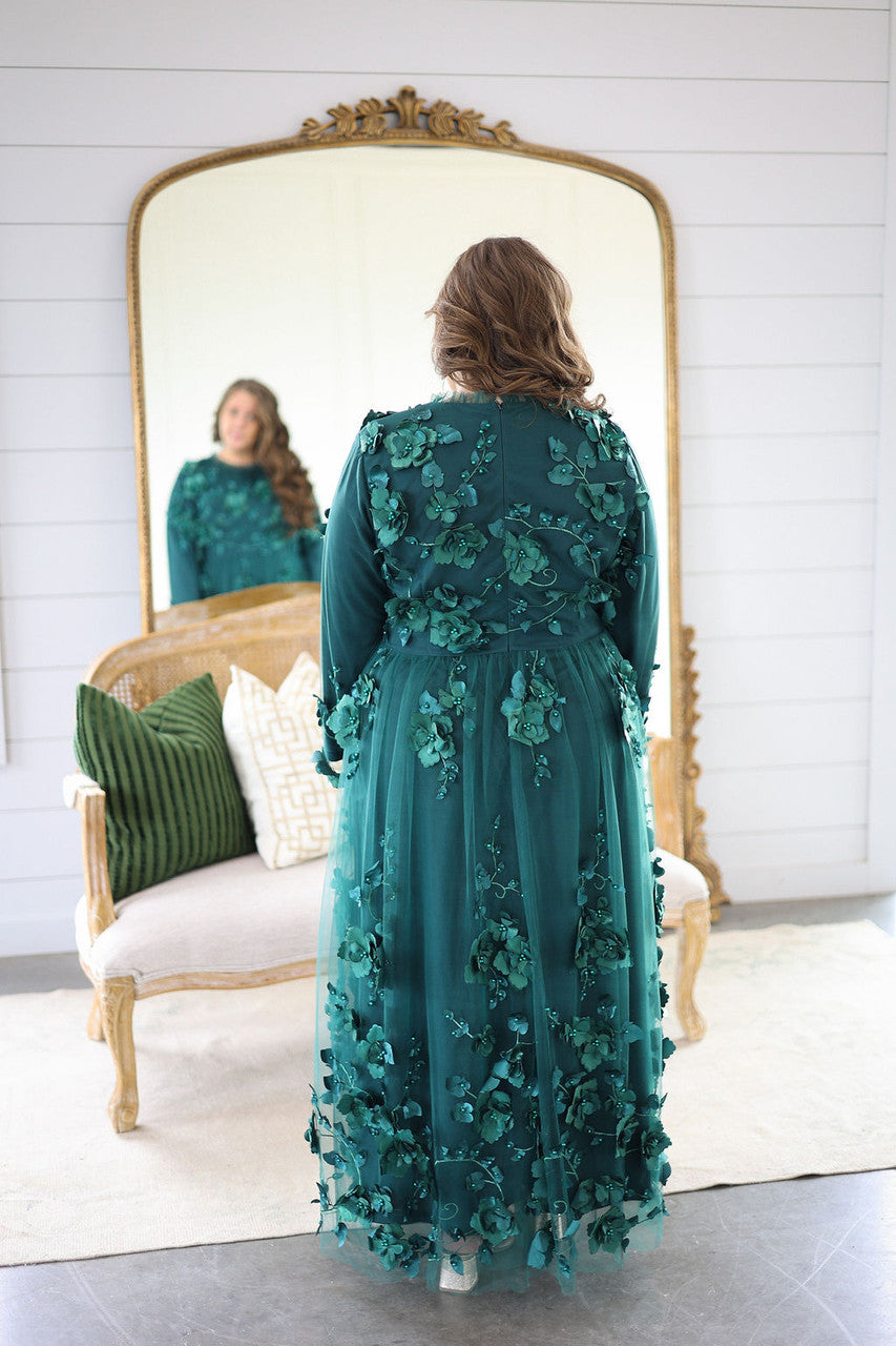 In a word: breathtaking. This stunning ensemble easily makes the list of one of our dreamiest designs to date! The details are simply stunning - we could stare at this dress all day. But we'd much rather wear it! This dress will make your special occasions all the more memorable. From engagement photos to anniversary dinners, from weddings to banquets and so much more. No dress will make you feel as special as this one - it's truly one of a kind. The taupe overlay features gorgeous black floral appliques that cascade across the entire body of the dress. The appliques will flutter gracefully with each step. Fully lined for modesty, you don't have to worry about layering this dress whatsoever. We can't wait to hear about the special memories you make in this dress! Back zipper.